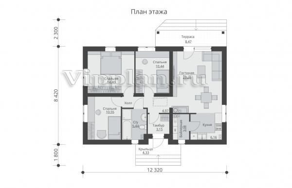| Размеры дома: | 10.72м×12.32м |